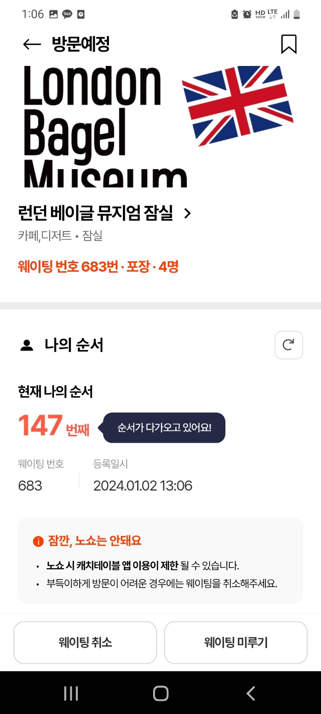 | 런던베이글 뮤지엄 잠실점 캐치테이블로 예약하고 포장하기! (0) | 2024.01.04 |
